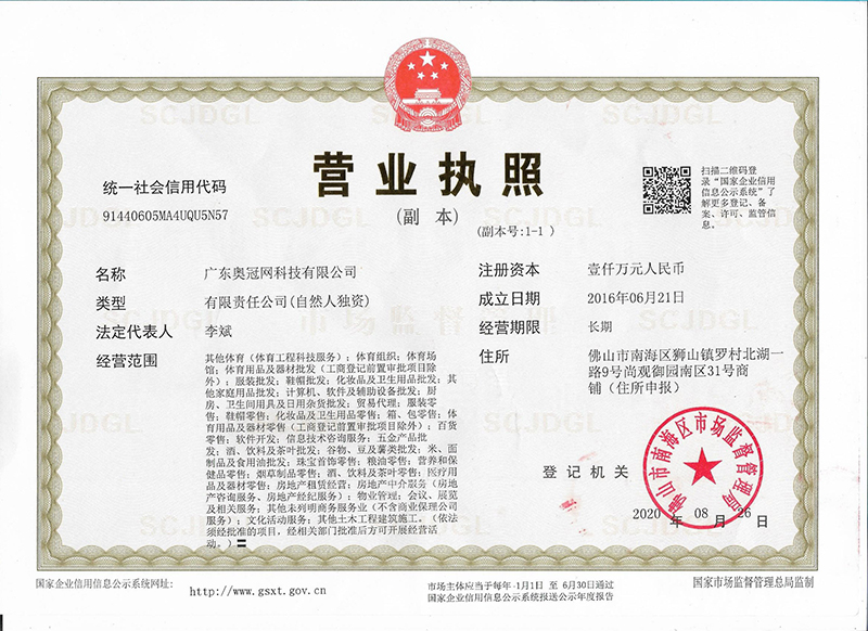公司旗下拥有全国企业运动产品团购网站-奥冠网,目前已经成为NIKE、adidas、卡尔美、彪马(PUMA)、茵宝(UMBRO)、李宁、ANTA、特步、BABOLAT、Wilson、YONEX、巴特侬、始祖鸟、探路者、凯乐石等40多个国际国内知名品牌线上官方授权商,为政府机关,学校、大中型企事业单位运动用品团购、定制批发一站式采购平台。专业室内外健身器材设计安装、篮球场、足球场、乒乓球场、网球场、网球场等运动场地设计施工建设。