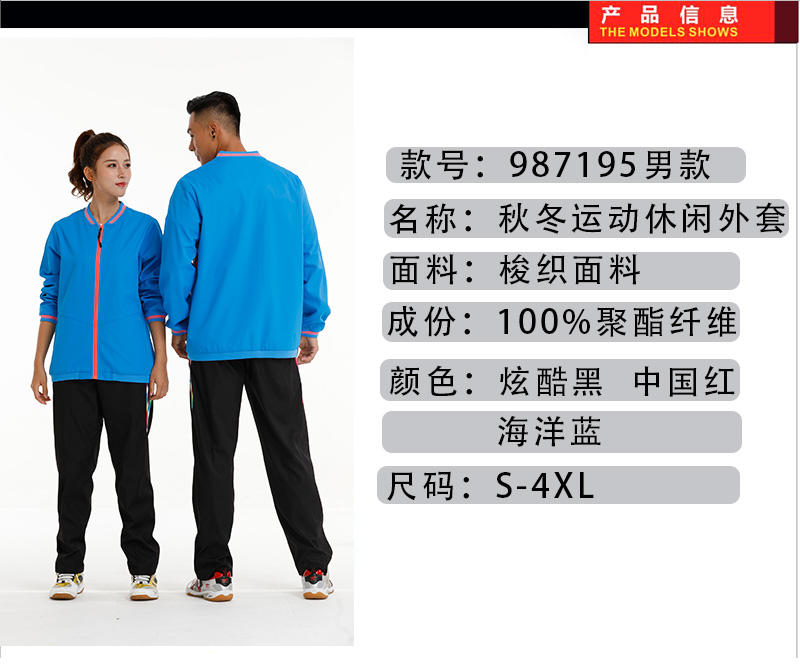 品牌: 型号:LY-987195 分类:长袖运动套装 性别:中性 零售价 :¥519元/套.00元 团购价:请咨询客服
