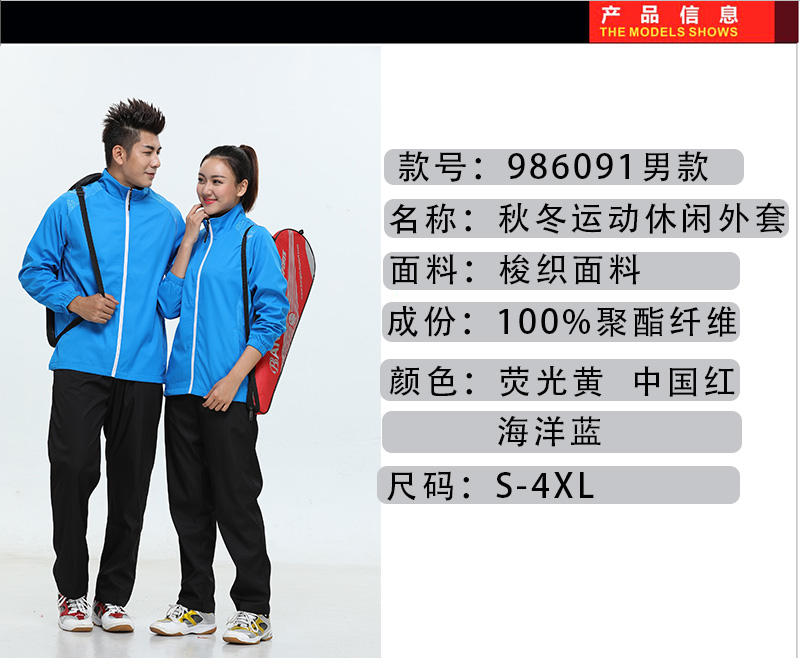 品牌: 型号:LY-986091 分类:长袖运动套装 性别:中性 零售价 :¥519元/套.00元 团购价:请咨询客服