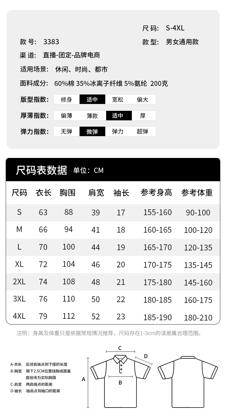 品牌: 型号:3383 分类:短袖T恤 性别:中性 零售价 :¥199元/件.00元 团购价:请咨询客服